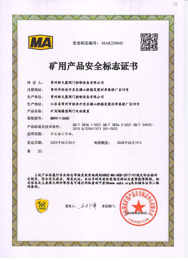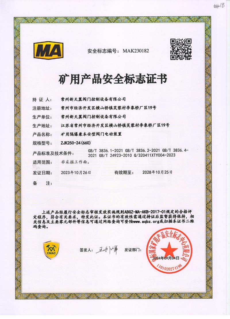 礦用隔爆ZB10-24中國國家強制性產品認證證書110.1