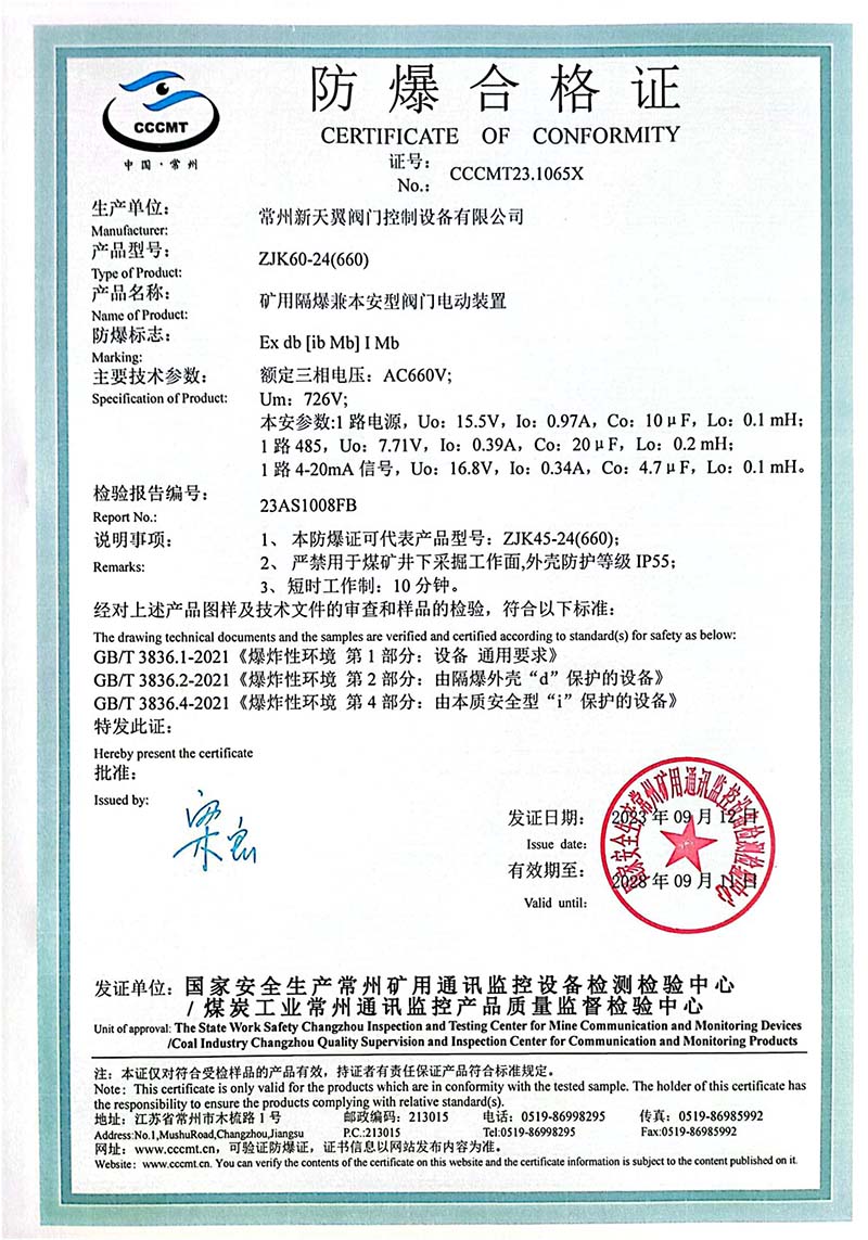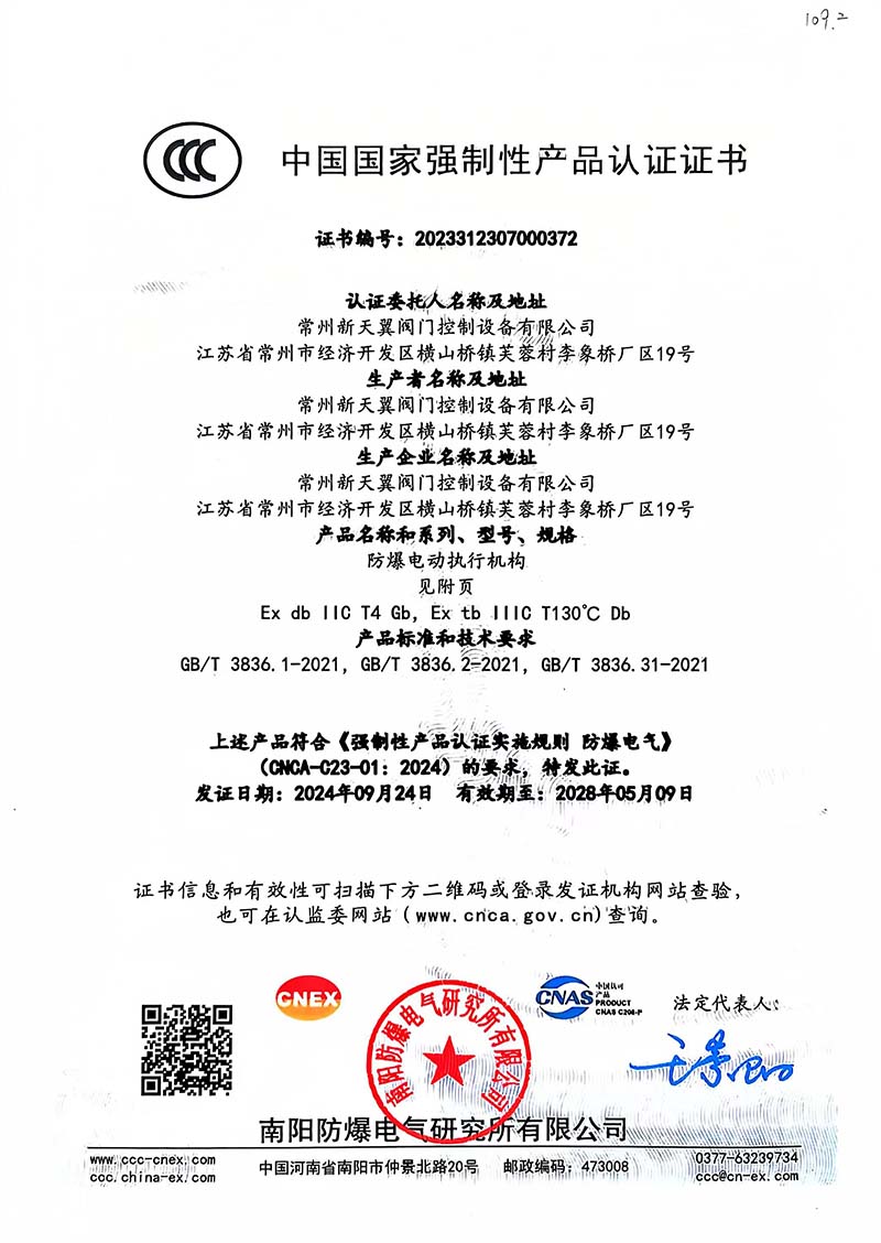 防爆Z10B Z10FB國家強制性產品認證CT4證書109.1