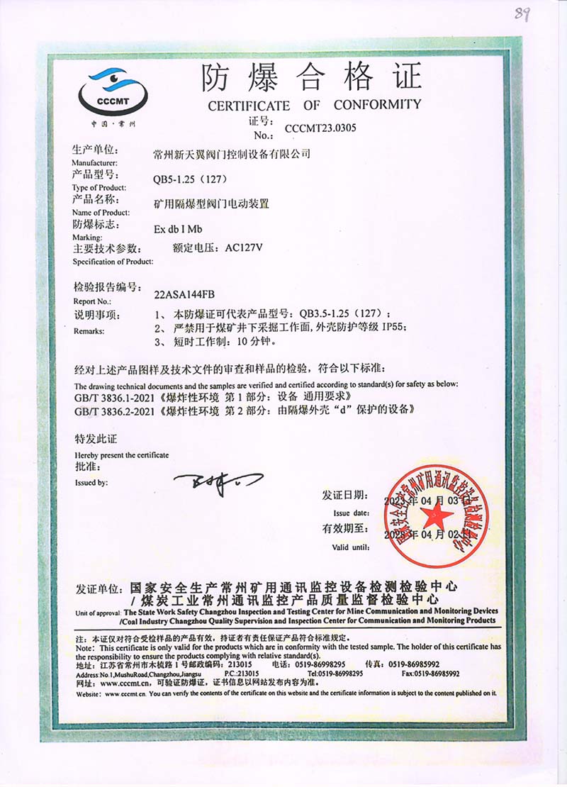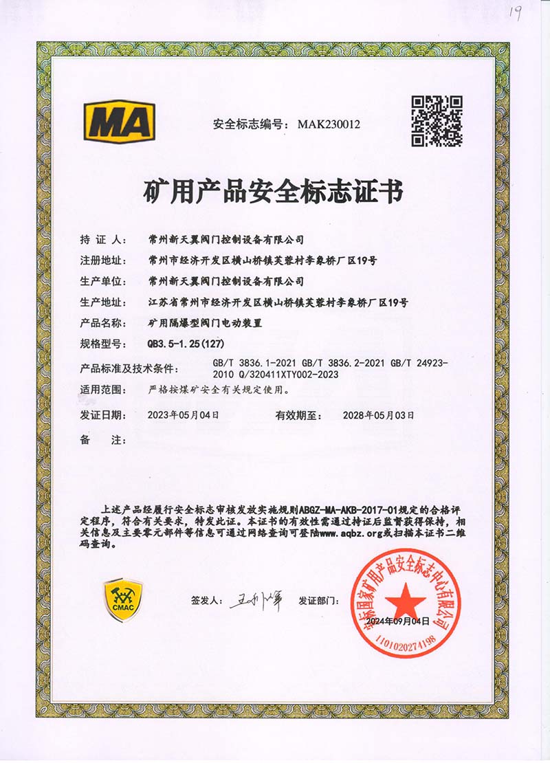 礦用隔爆QB127V中國國家強制性產品認證證書105.2
