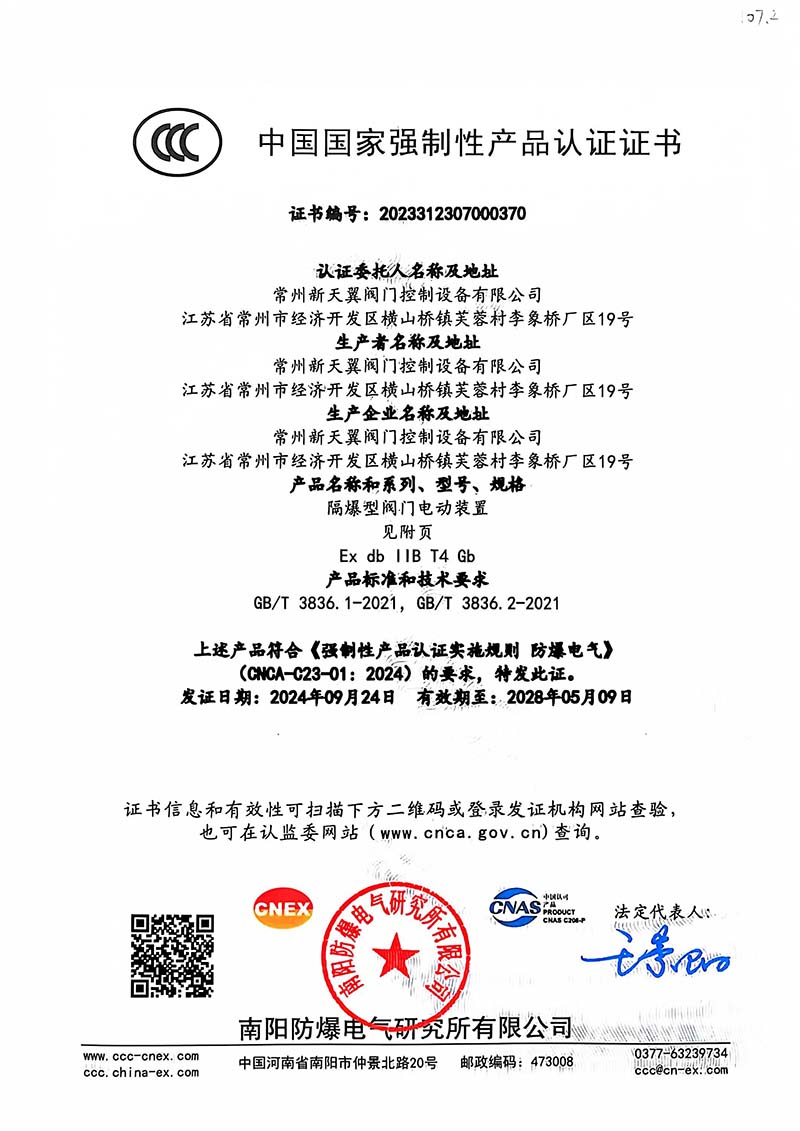 隔爆控制箱 中國國家強制性產品認證證書111.2